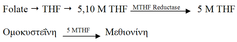 To ένζυμο MTHFR (MTHF Reductase) καταλύει την μετατροπή του 5,10 M–THF σε 5 ΜΤΗF (5-methyl tetrahydrofolate) και το ένζυμο 5 ΜΤΗF μετατρέπει την ομοκυστεϊνη σε μεθιονίνη.