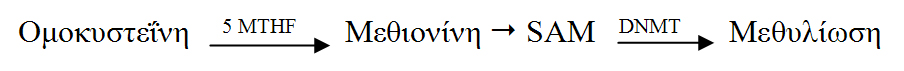 Από την μεθιονίνη προκύπτει η S–adenosyl methionine (SAM), η οποία είναι η βασική πηγή μεθυλίων μέσω του ενζύμου DNA methyl transferase (DNMT), το οποίο ρυθμίζει την μεθυλίωση του DNA.