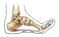 3. Κοιλοπόδια: Η κοιλοπόδια (εικόνα 2) είναι ο τύπος ποδιού που η καμάρα είναι μεγαλύτερη από τη φυσιολογική (εικόνα 3). Έτσι, η ανατομική θέση όλων των οστών του ποδιού αλλά και των μεταταρσίων είναι τέτοια που αυξάνει τις πιέσεις στις κεφάλες αυτών, που με τη σειρά τους τραυματίζονται και προκαλούν μεταταρσαλγία.Εικόνα 2. Κοιλοπόδια  Εικόνα 3. Φυσιολογική καμάρα
