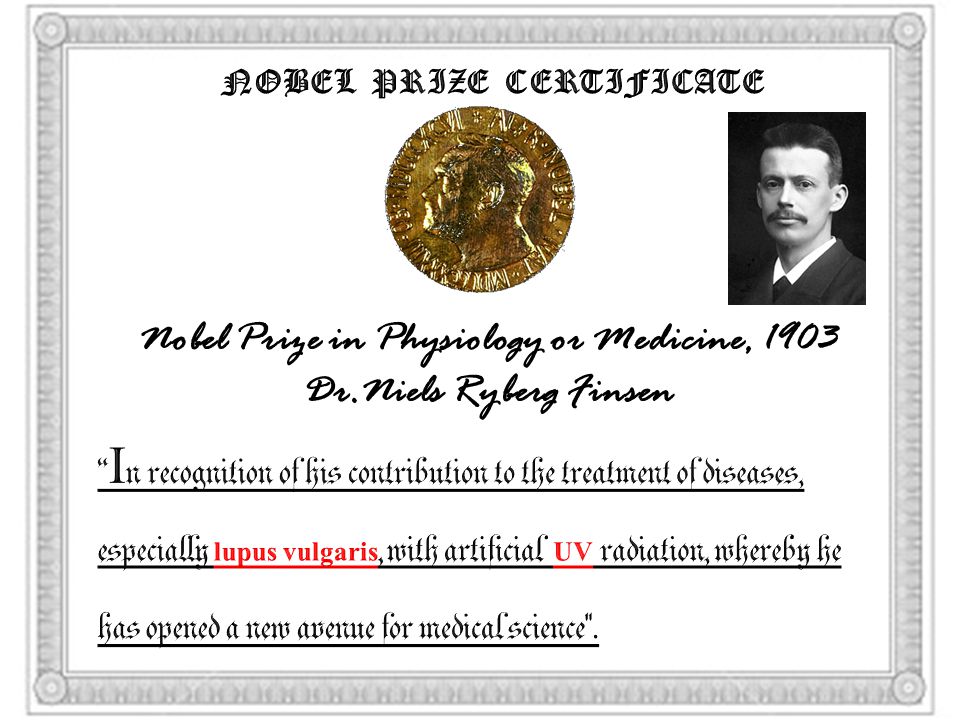 Μεγάλη όμως αναγνώριση στα οφέλη της φωτοθεραπείας ήρθε με την ερευνητική δουλειά του Δανού ιατρού Niels Finsen,κύριου πρωτοπόρου της σύγχρονης φωτοθεραπείας που άνοιξε καινούργια μονοπάτια στην ιατρική επιστήμη και ο οποίος ήταν ο πρώτος που χρησιμοποίησε την φωτοθεραπεία με φιλτραρισμένο ηλιακό φώς αλλά και με λαμπτήρες τόξου του άνθρακα και θεράπευε επιτυχώς μετά από λίγες συνεδρίες περιστατικά δερματικής φυματίωσης lupus vulgaris στο πρόσωπο .