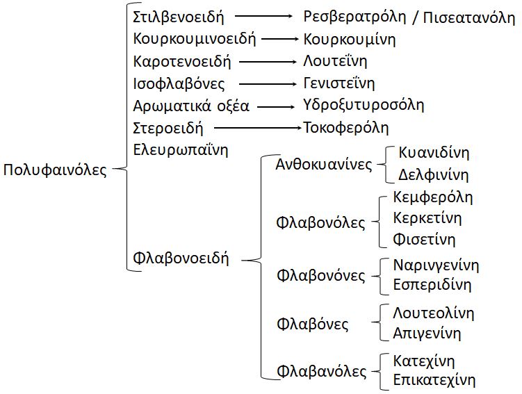 Παρατηρούμε ότι όλες οι μεγάλες οικογένεις των πολυφαινολών εκπροσωπούνται στο δυνητικό οπλοστάσιο μας εναντίον του φονικού ιού. Δεκάδες άλλα αντιοξειδωτικά δεν αναφέρονται στην παρούσα σύνοψη διότι δεν υπάρχουν δημοσιευμένες μελέτες σχετικά με τον SARS-CoV-2, ή με τους άλλους κορωνοϊούς, ή με ιούς influenza, ή με το SARS ή με συγκεκριμένη δράση τους στις προ-φλεγμονώδεις κυτταροκίνες.